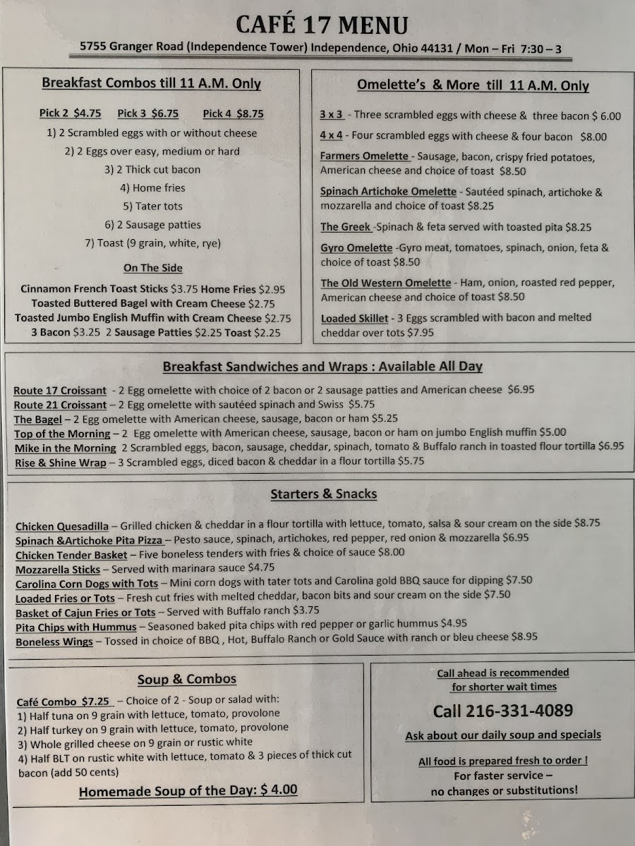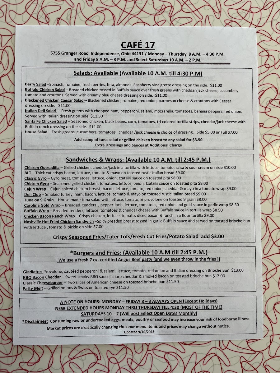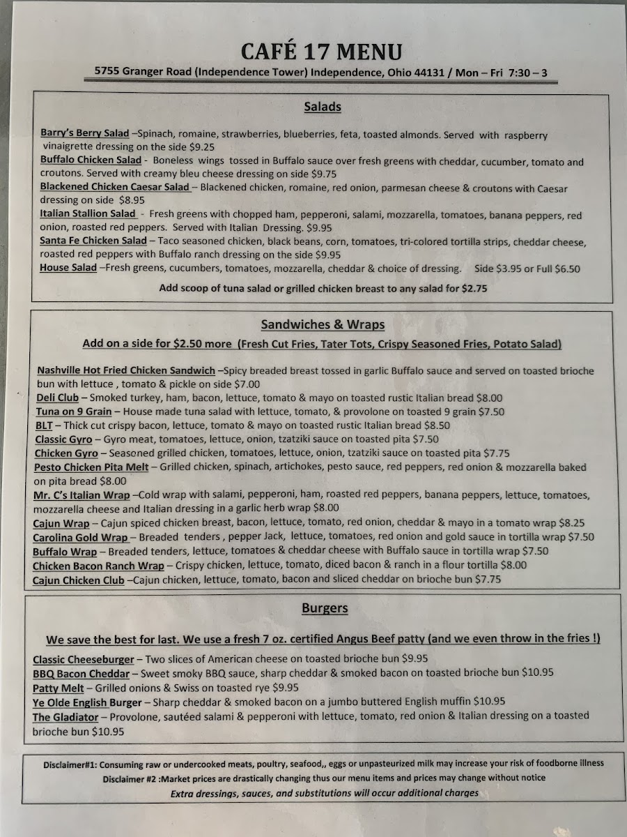 Welcome to Cafe 17, where culinary excellence meets a warm and inviting atmosphere! Located in the Independence Tower, Cleveland, this gem is notable for its vibrant menu that features dishes crafted with fresh ingredients. Every bite promises satisfaction, as reflected in the glowing reviews from delighted customers.