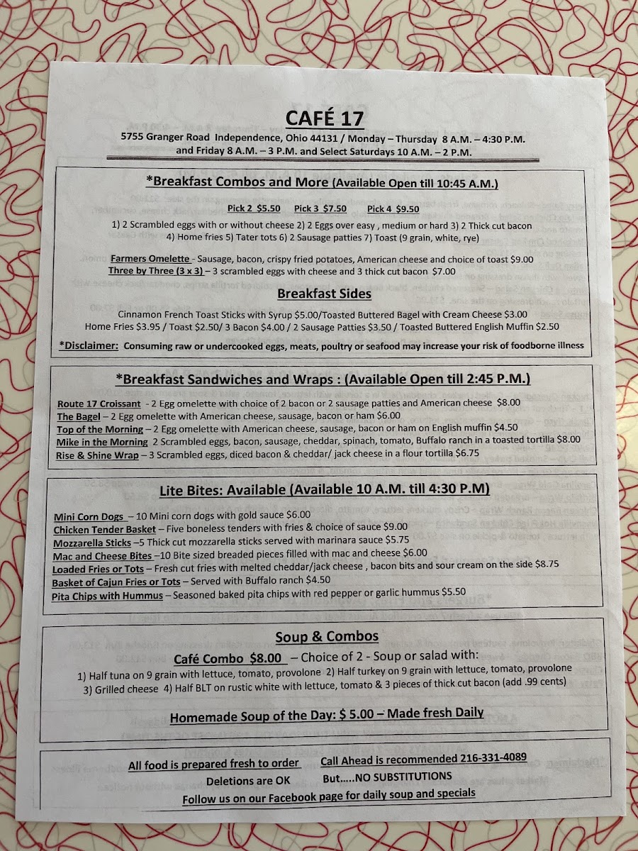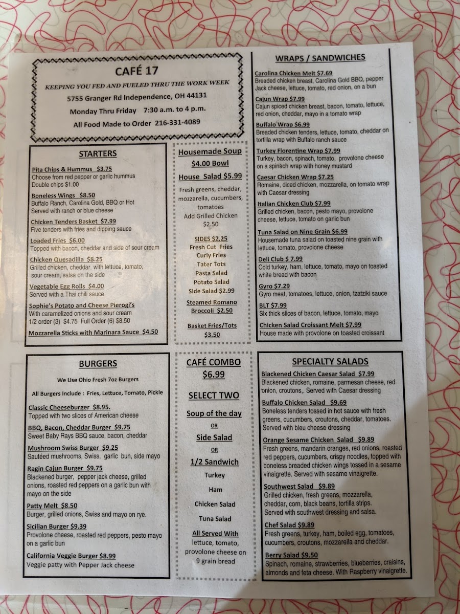 Cafe 17 isn't just another cafe; it's a community hub where great food and friendly service unite. Whether you're in for a quick soup or a hearty burger, you won't leave disappointed!